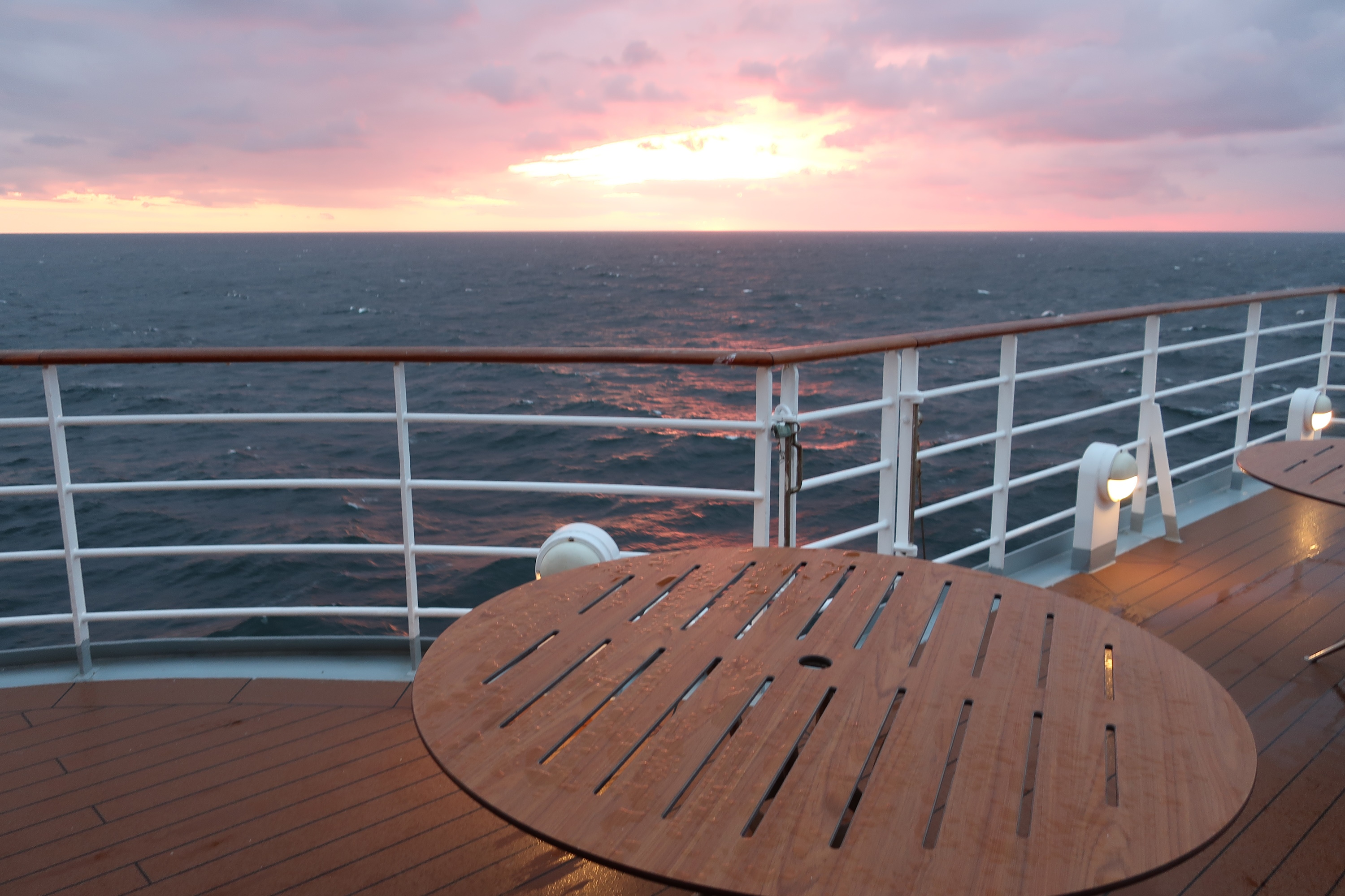 Schöner Schnappschuss während einer Kreuzfahrt vom Schiffsdeck aus, die alles zu bieten hatte: Regen, Sonne und viel Meer.
